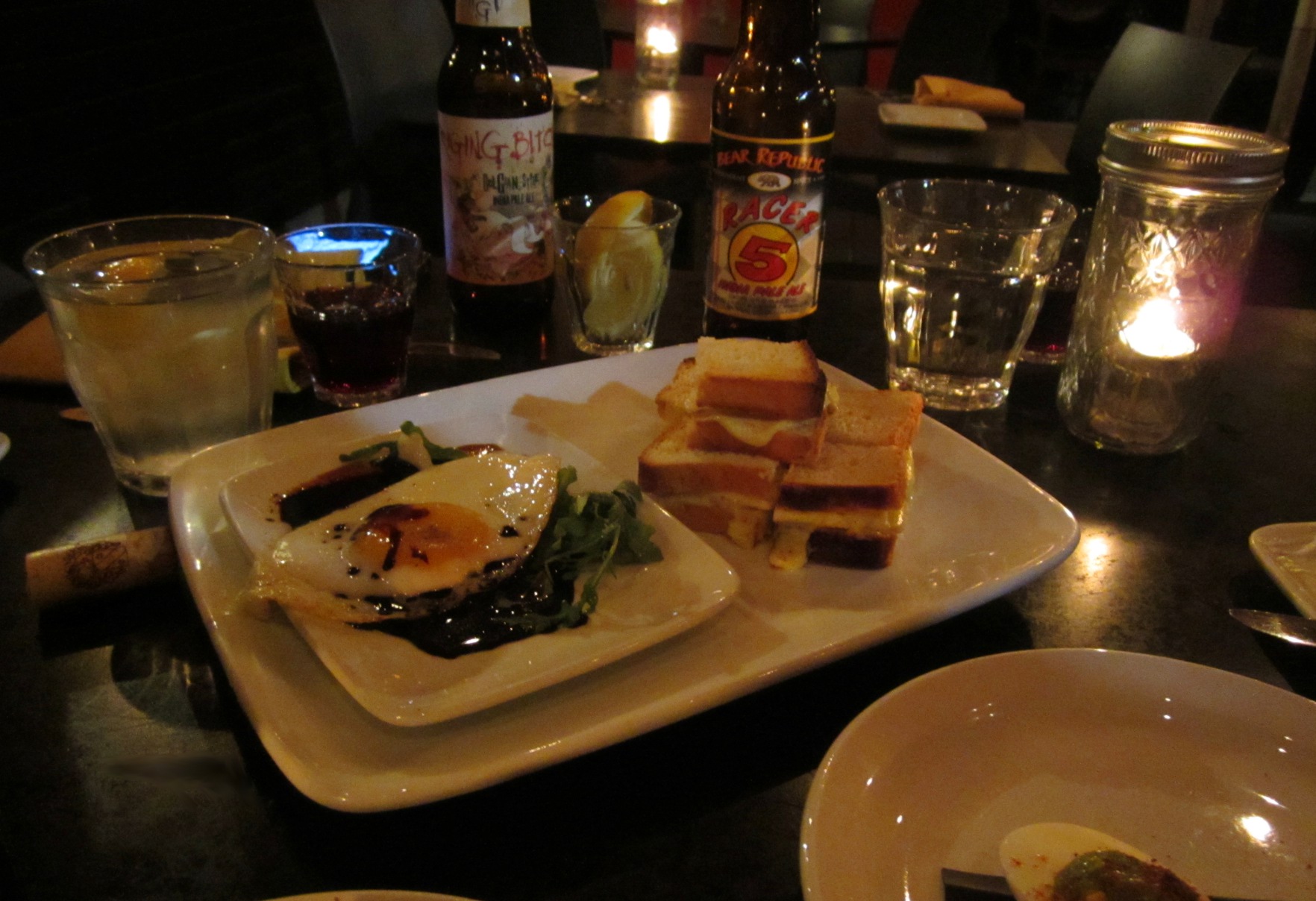 And then the bacon arrived. Five different selections, with bread, crackers, peanuts and olives completed the offering. I really like that they serve all the bacon to you at once, because it let’s one taste each kind of bacon with each champagne at their own pace. Now, I do believe these change per month, but here are the ones we sampled: