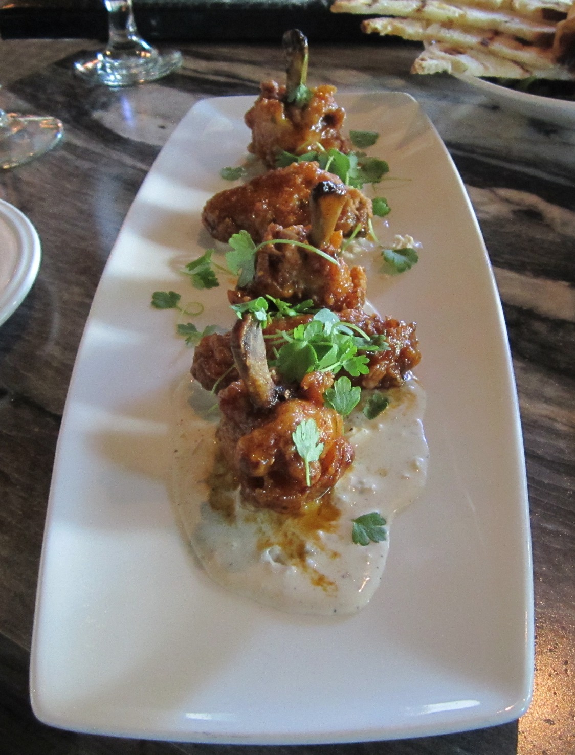 Once seated, my party and I were treated to a little rose to cleanse the palette, and then we started off with our first champagne. Unique and eclectic tableware is used throughout. I really want to get a set of those rooster plates.