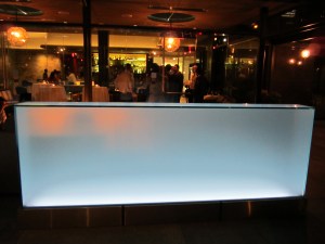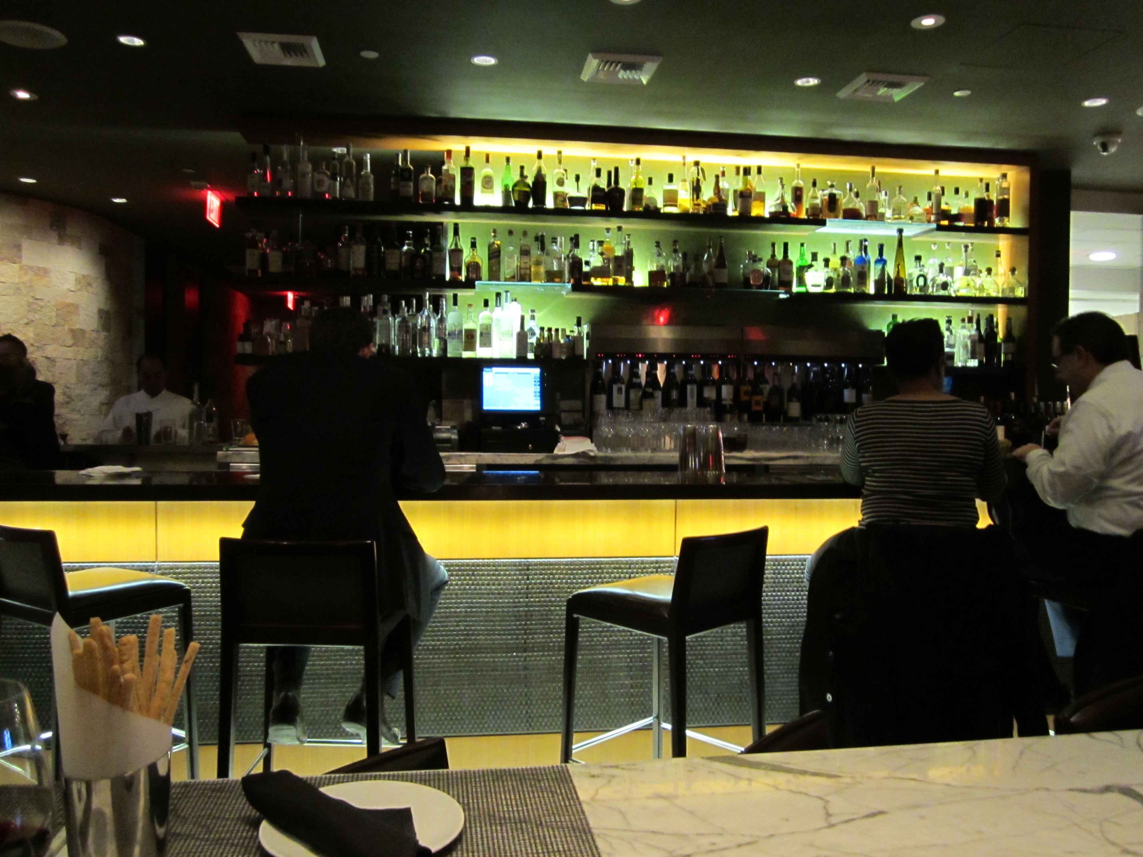 Le Paradou Grenache 2009 – I opted to go with the House Red. Their house wines change periodically. Lately, it has been this delicious grenache from France. The name of the winery, Paradou, refers to old watermills scattered about the hills of Provence. A medium bodied wine, this red was seductive and delicious. I had two glasses. For more information about Paradou, please visit their website here: http://www.paradouwines.com/en/ In the photo above, one can also see the charming square stools used as seating. These were upholstered in a lush fabric almost like velveteen. I found them to be very comfortable, and am even contemplating building a couple for my apartment.