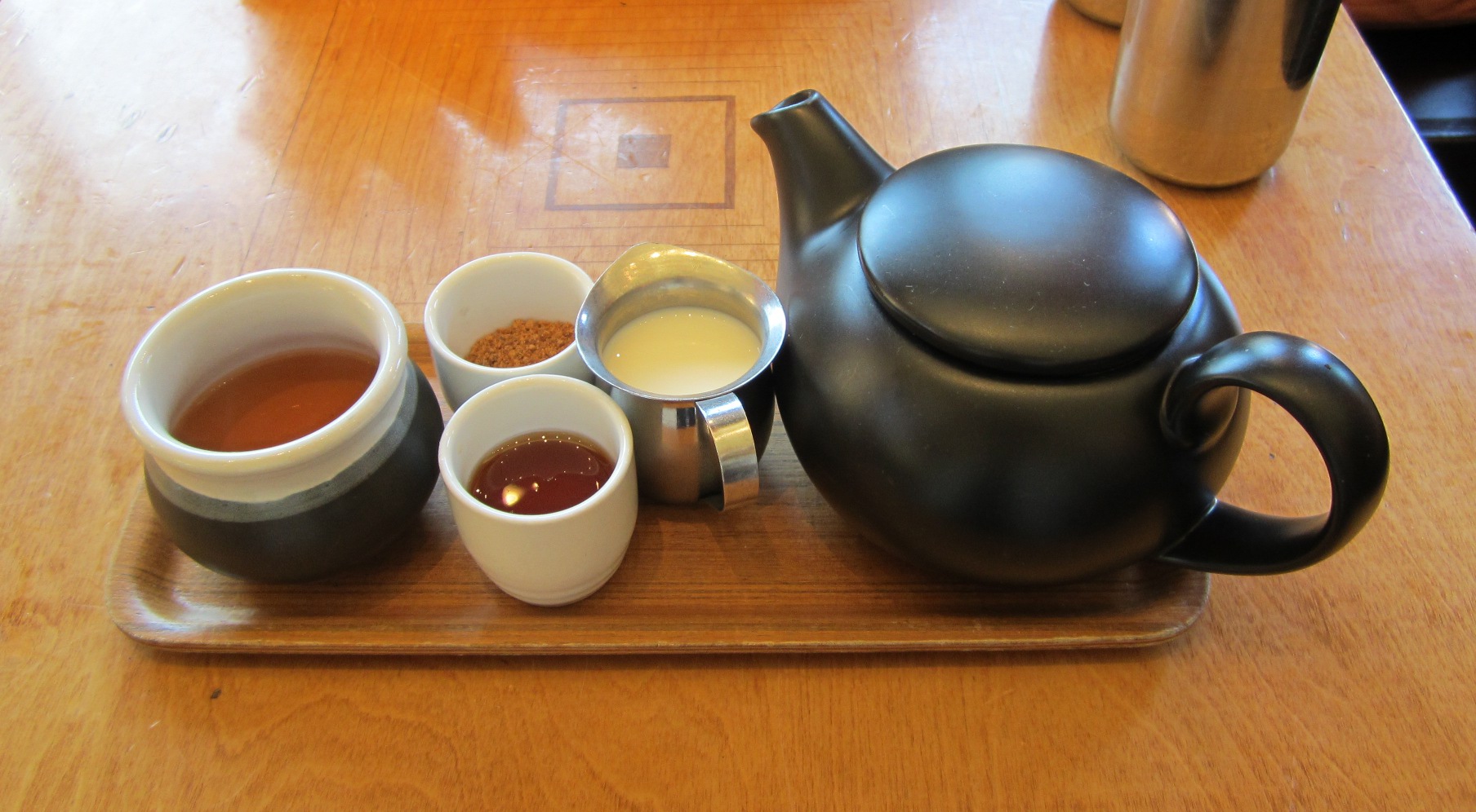 We each received a small tray with a steaming pot of their Breakfast Blend Black Tea, a stimulating and robust brew that was incredibly delicious. This also included honey, cream, and coconut nectar. The evaporated coconut palm nectar is the brown granules that look like brown or unrefined sugar, but it’s actually healthier for you. Imported from farmers in Bali, Indonesia, coconut palm nectar is the sap of the coconut plant dehydrated into crystals. The result is coconut palm sugar which is low on the glycemic index, and full of potassium and micro-nutrients. It can be substituted for table sugar and in baking. I found it to be just as sweet as sugar, and went perfectly with the Breakfast Blend.